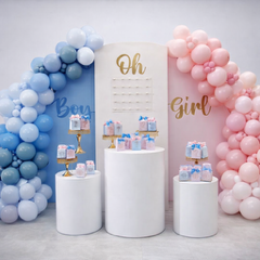 Montaje equilibrado en tonos azul y rosa con diseño moderno y elegante para revelación.