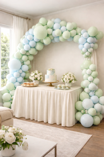 Montajes delicados y elegantes para baby showers, bautizos y bienvenidas especiales.